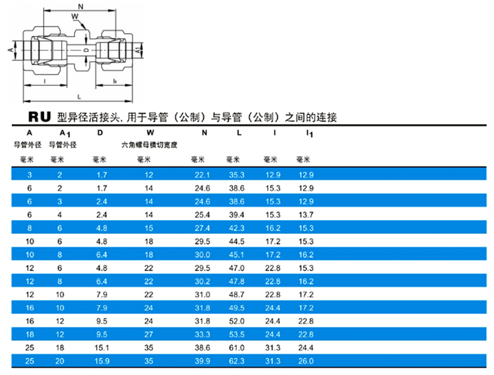 RU型異徑活接頭