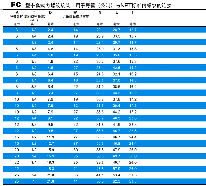 FC型卡套式內螺紋接頭